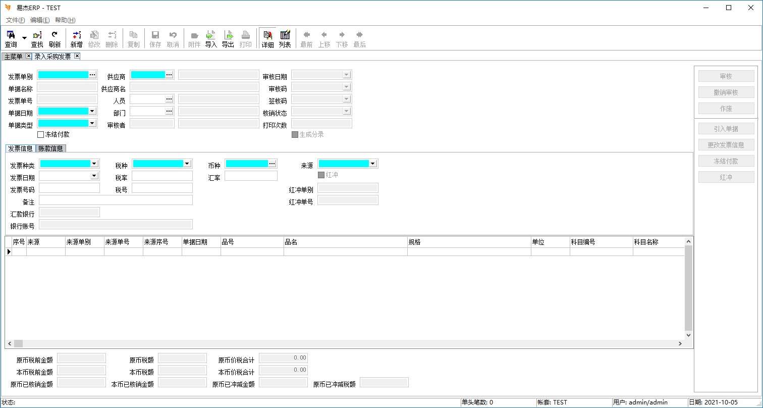 程序名称:录入采购发票