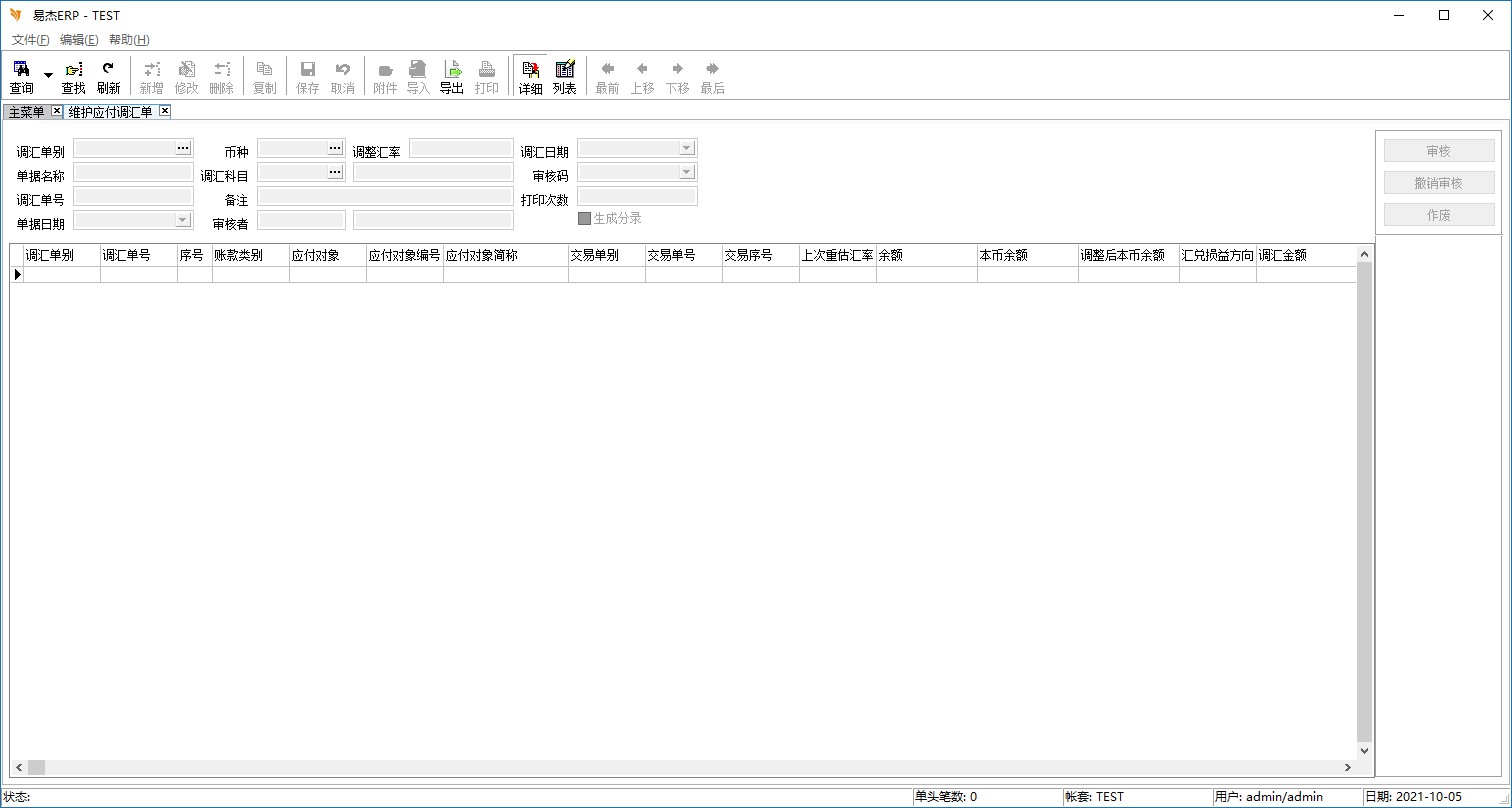 程序名称:维护应付账款调汇单