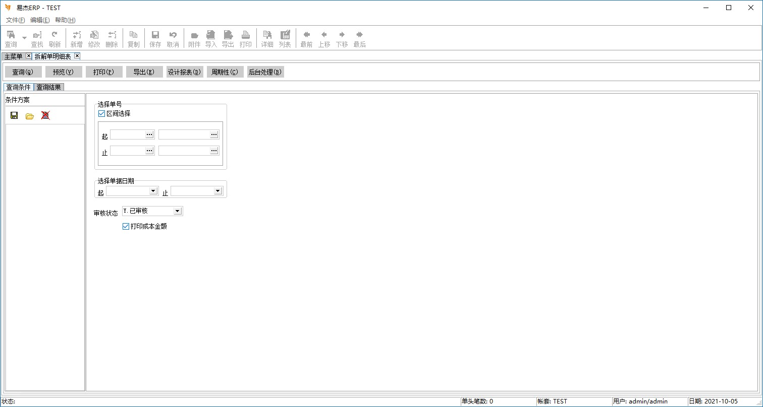 可选择需打印的拆解日期起止期间.若空白表全部皆纳入。