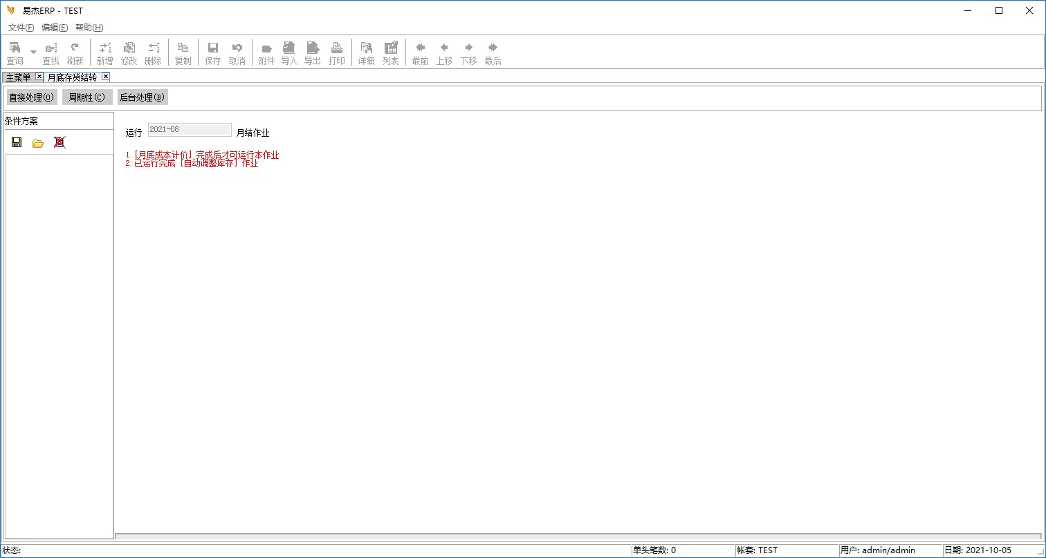 • 结算当月份的存货及统计当月的库存交易,生成品号现行年月交易统计信息,并将现行年月累加。