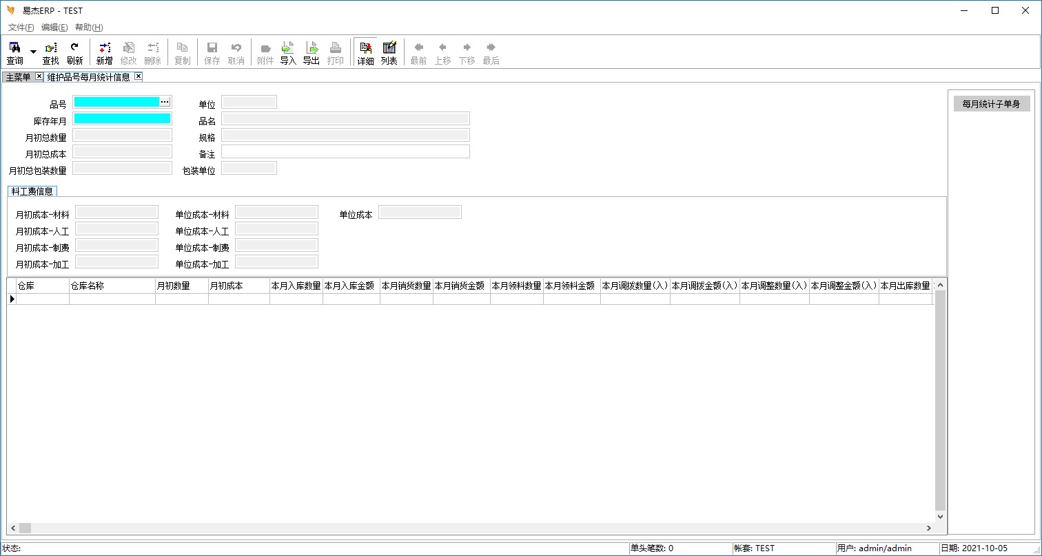 - 本信息由「月底存货结转」而生成,可查询品号每月各仓库,各种交易统计信息.属于系统汇总信息,信息有误时,应透批处理中的「现有库存重计」来重算,不应直接从数据库或本作业中调整。