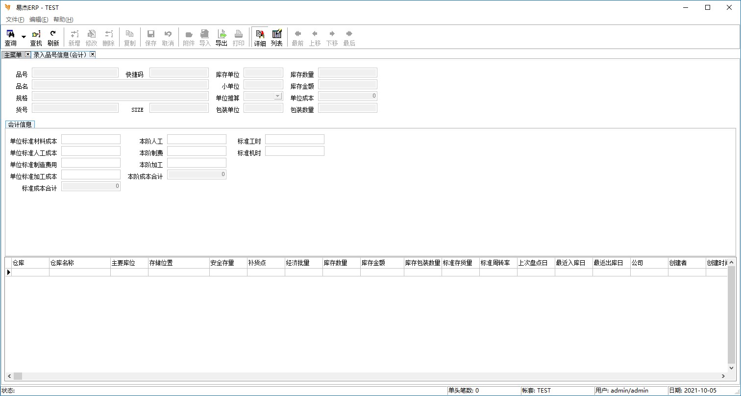 程序名称:录入品号信息(会计)