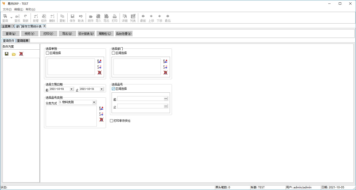 程序名称:部门库存交易统计表