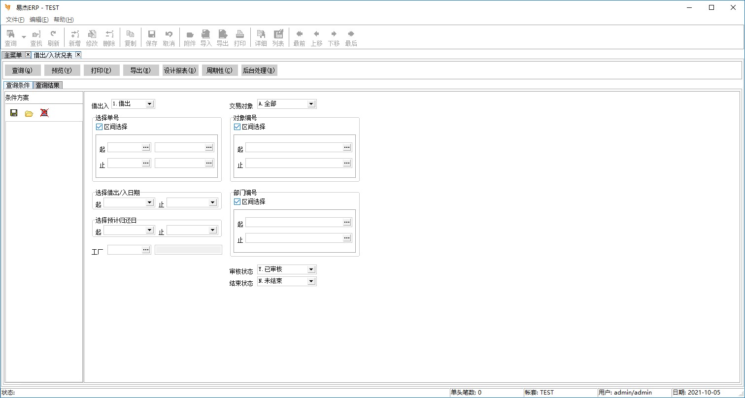 借出入字段选择「全部」,则[F2]交易单号信息查询,单据性质为13或14者。