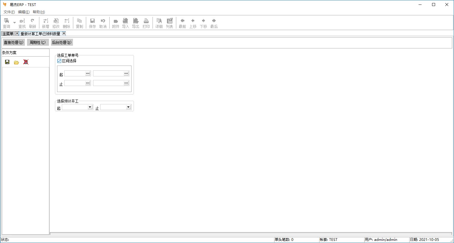 - 可重新计算某区间工单单据的已领套数,已生产量,报废数量,已生产包装量及报废包装数量的料件数。