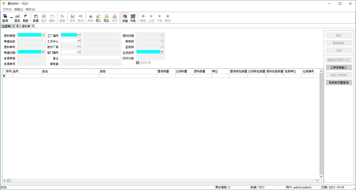 为工单单号.此字段可为空白,空白时则自动赋值已用单号加一.若非空白,则审核信息必须存在于工单单身档内,缺省值品名,规格,退料数量,单位,仓库和材料类型,并自动显示需领用量及已领料量信息。