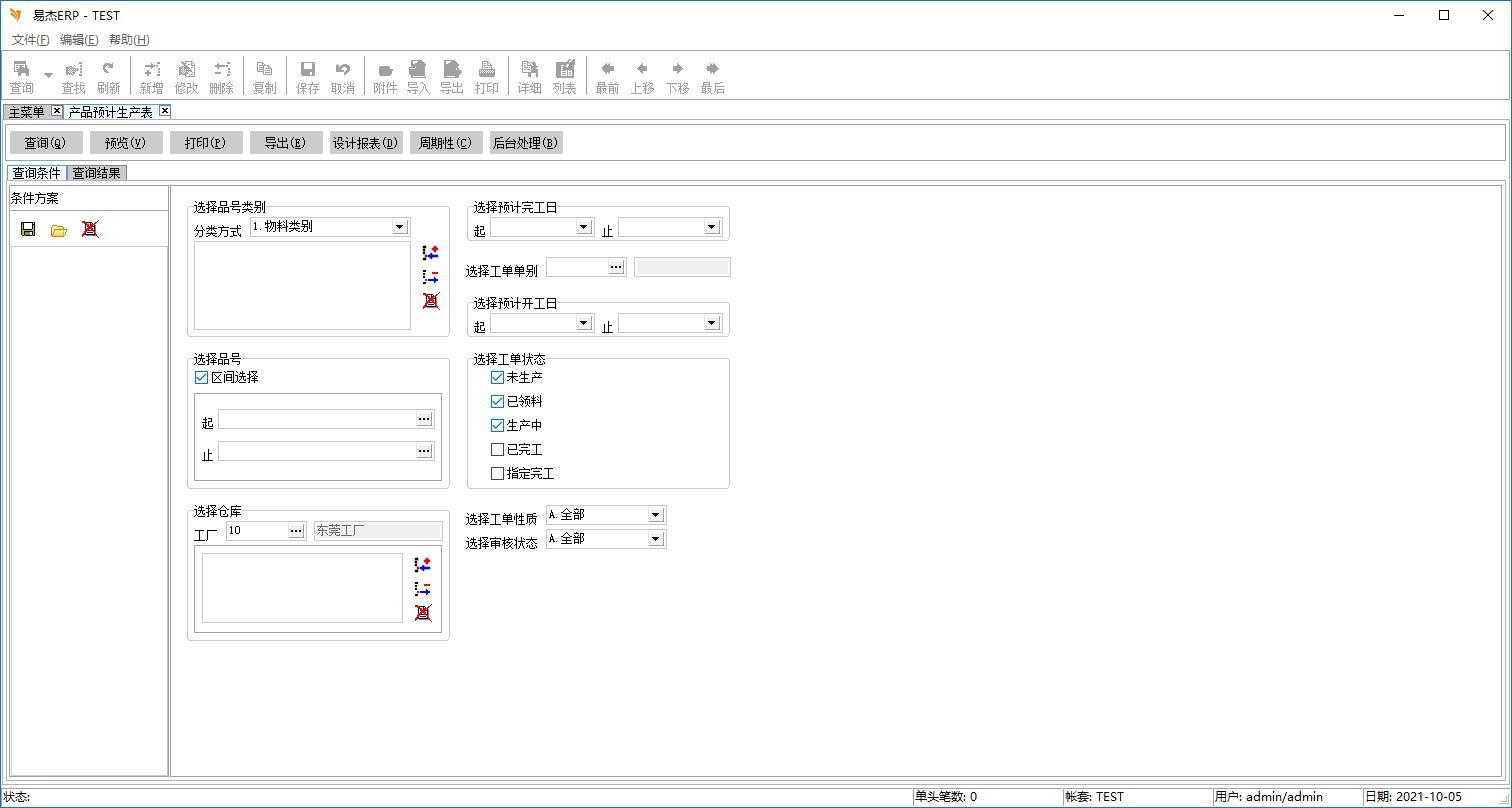 程序名称:产品预计生产表