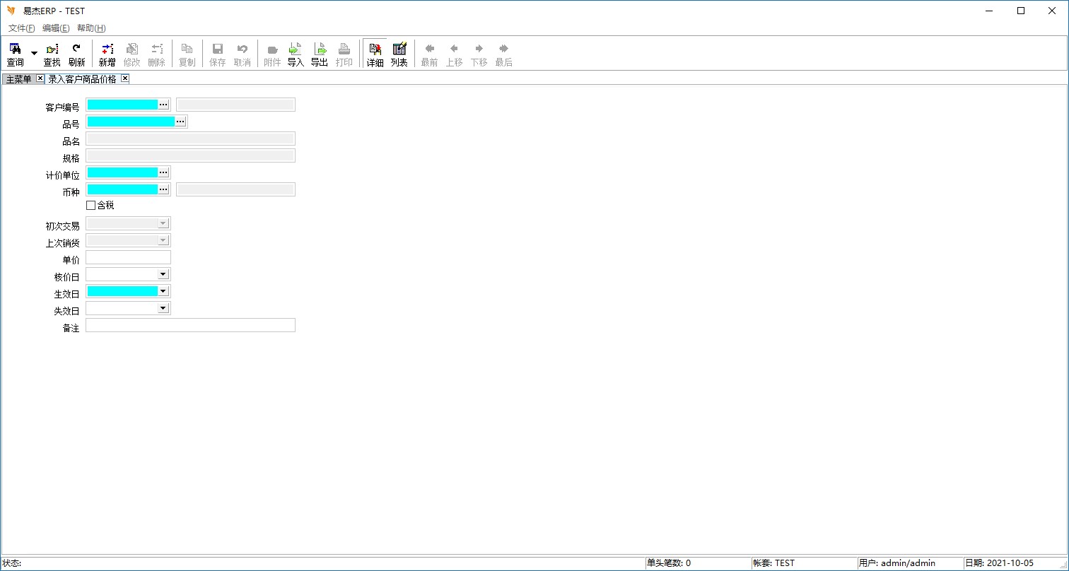 - 凡客户报价,受订销售时均于事前约定单价,以此单价为异动的缺省值,可由本作业对客户商品的单价进行录入。
