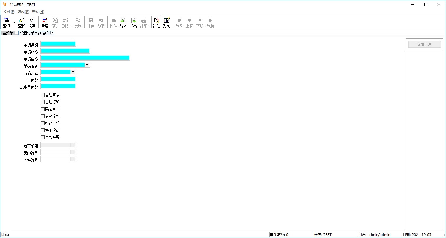 程序名称:设置订单单据性质