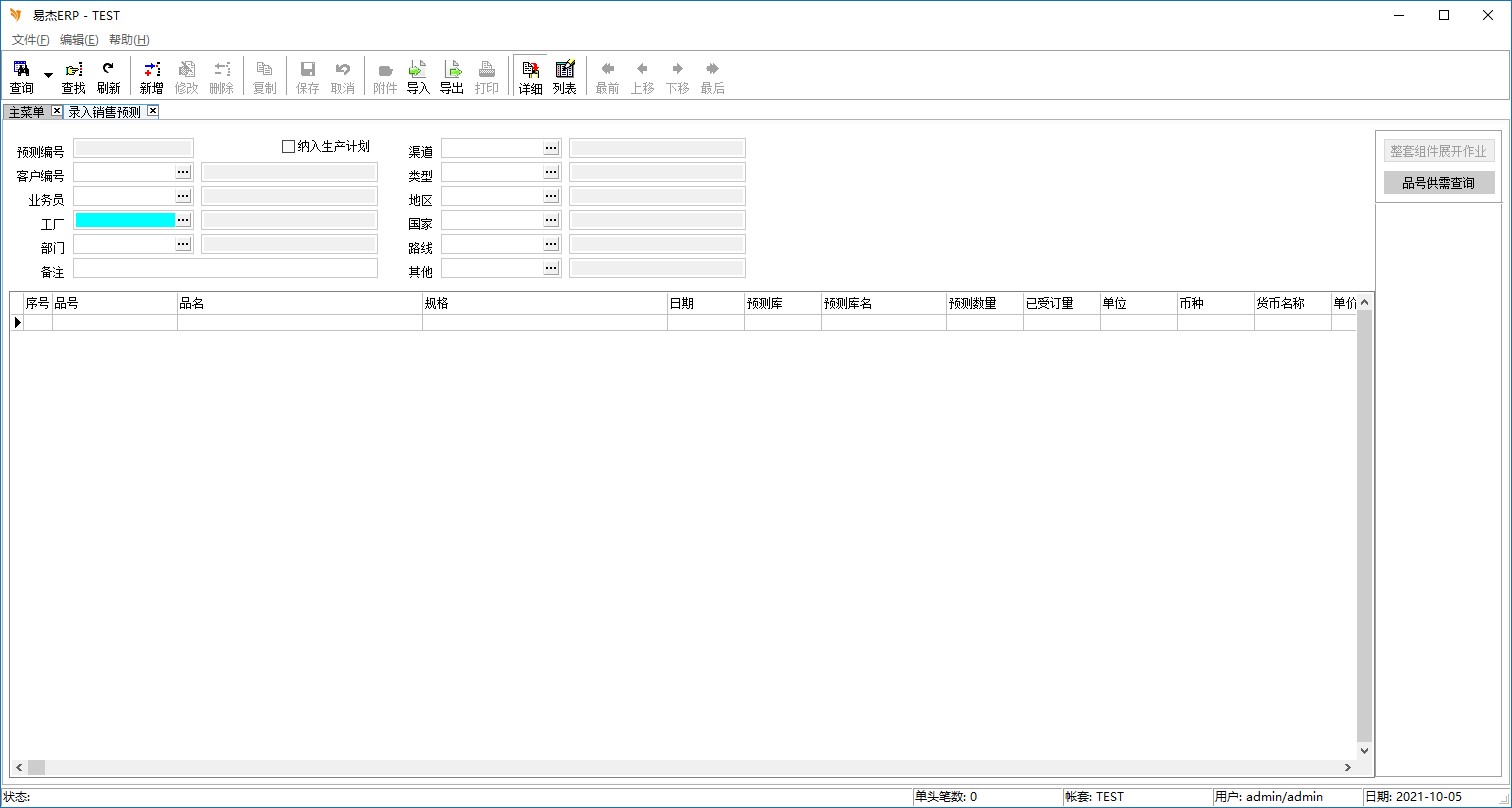 - 凡商品的年度销售目标或生产计划的销售预测由本作业进行信息输入,年度目标可做为将来销售分析的对比,而生产的销售预测为将来「生产计划系统MRP/LRP」的需求来源。