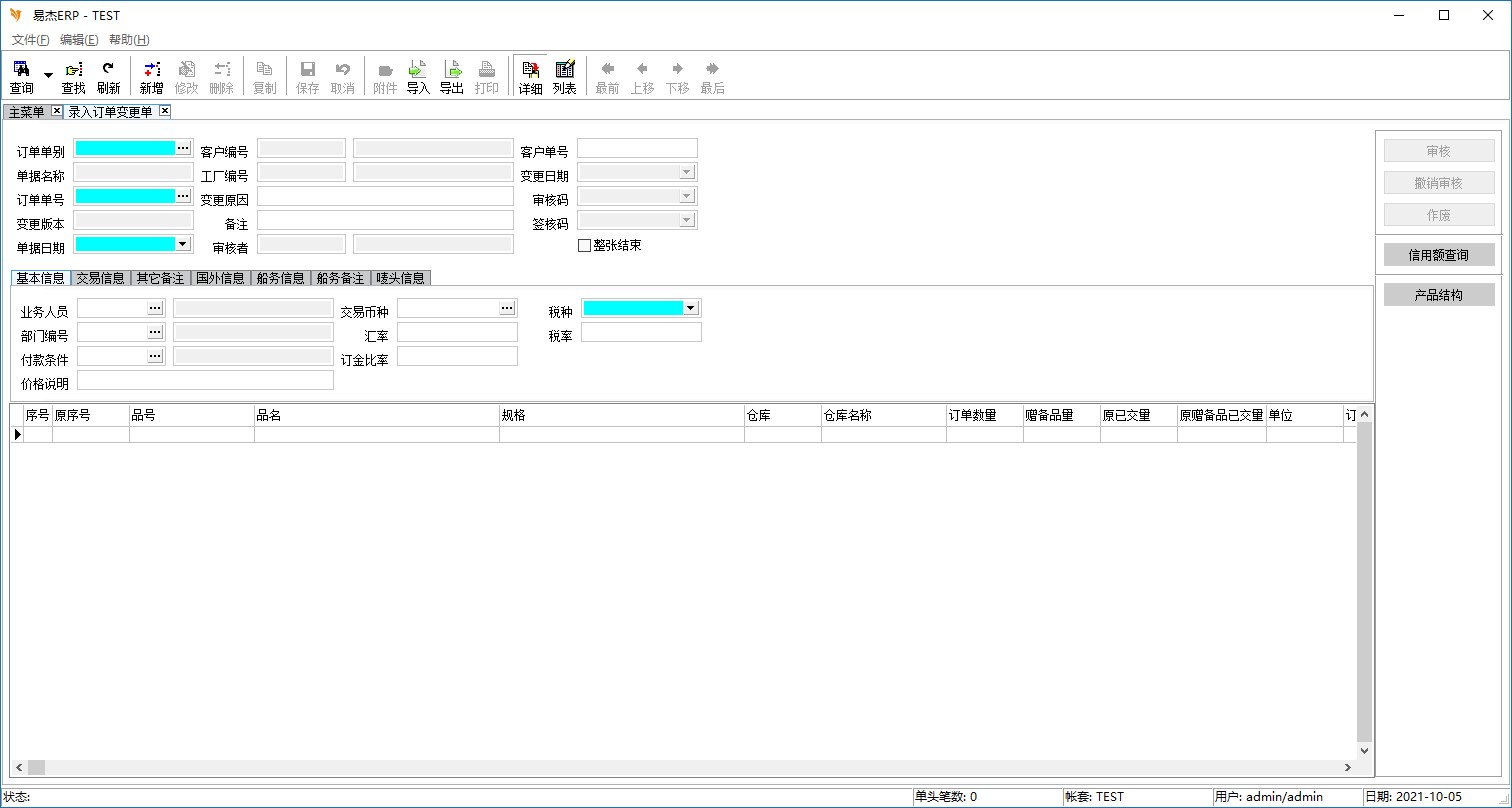 不可空白,为变更订单的单号.输入后显示原始订单相关字段如客户编号,订单日期等。