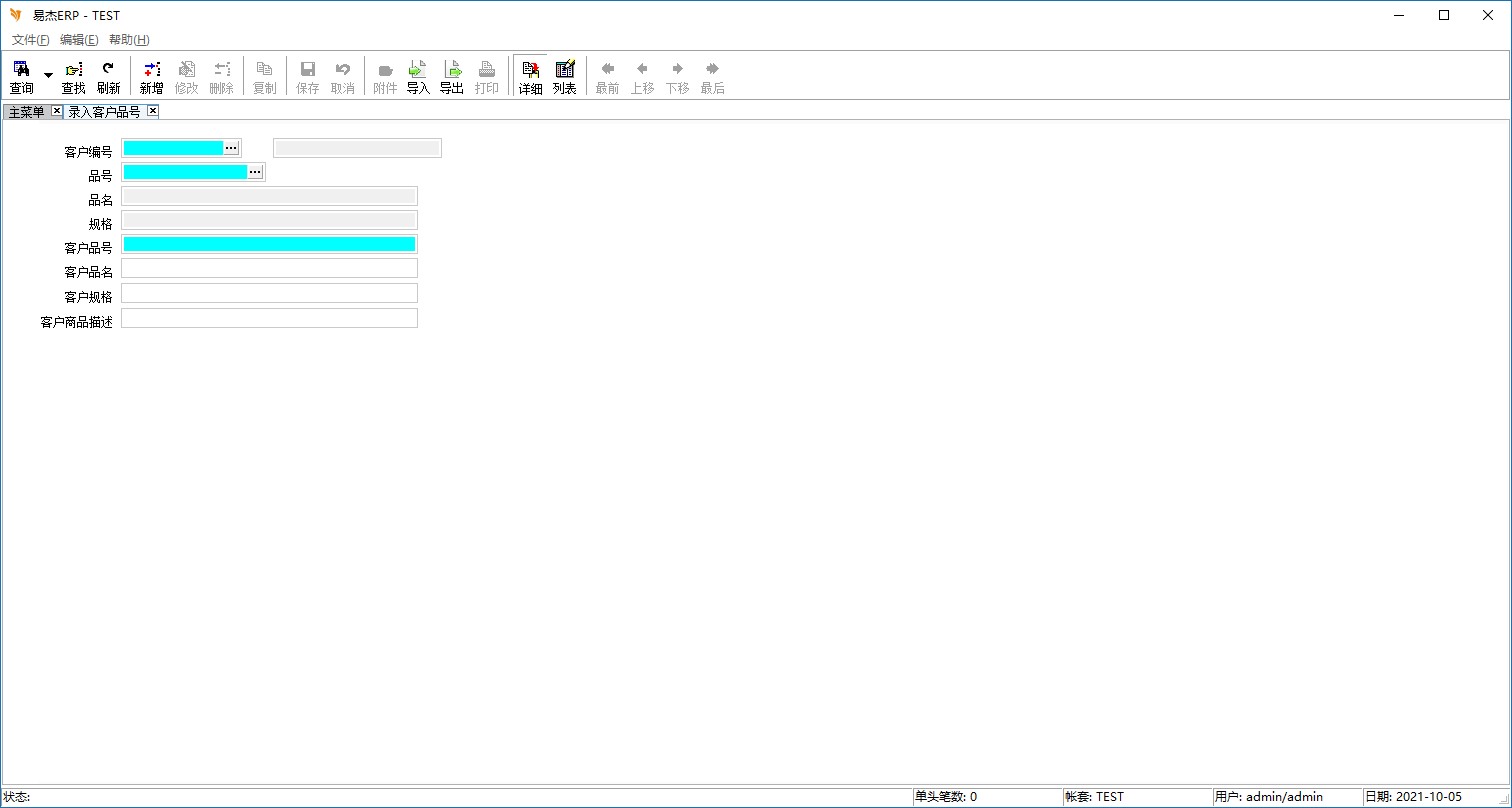 程序名称:录入客户品号信息