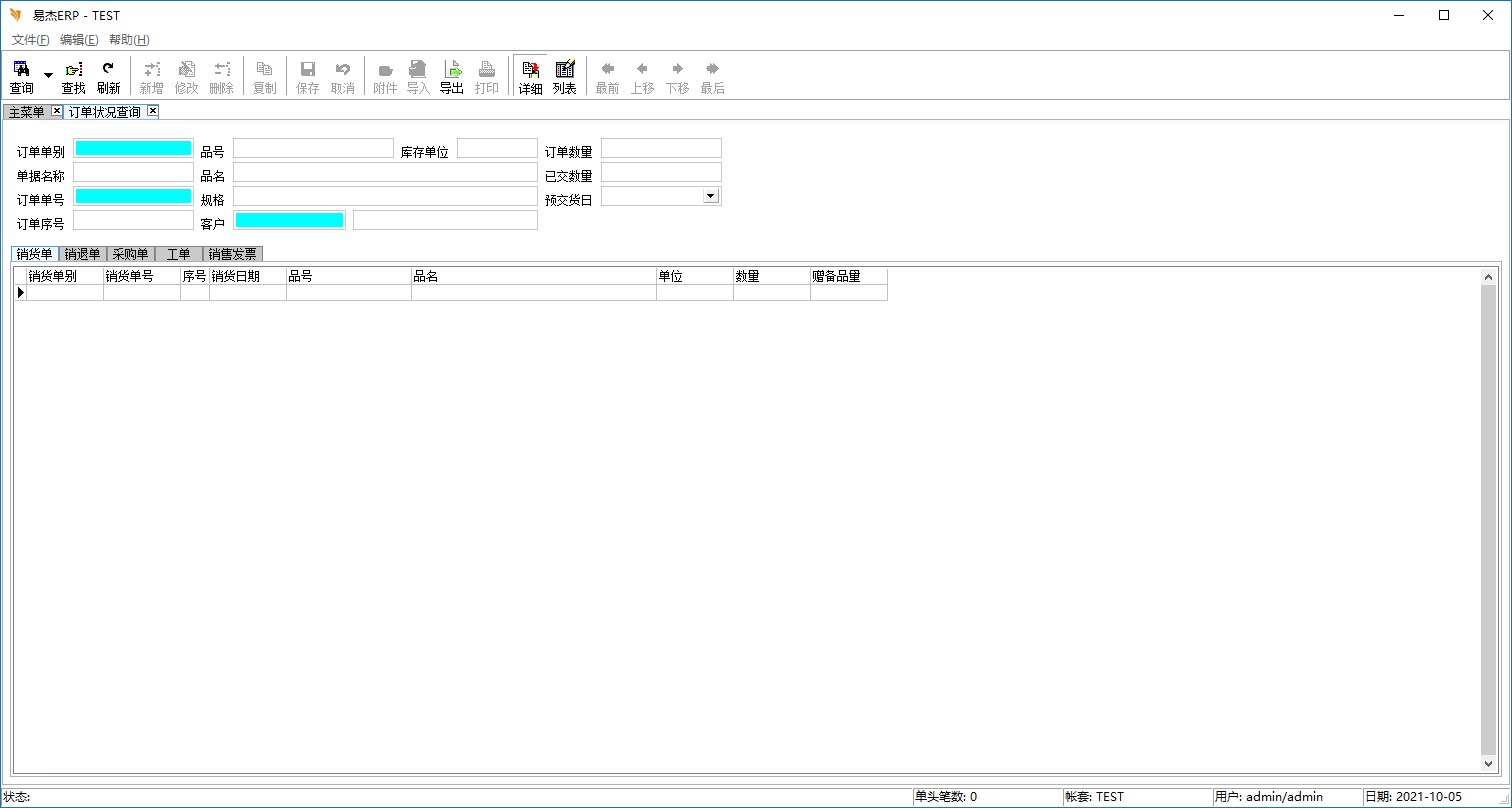 可查询与该订单相关的请购、采购、进货、销货、退货以及结账等一系列相关单据的信息。