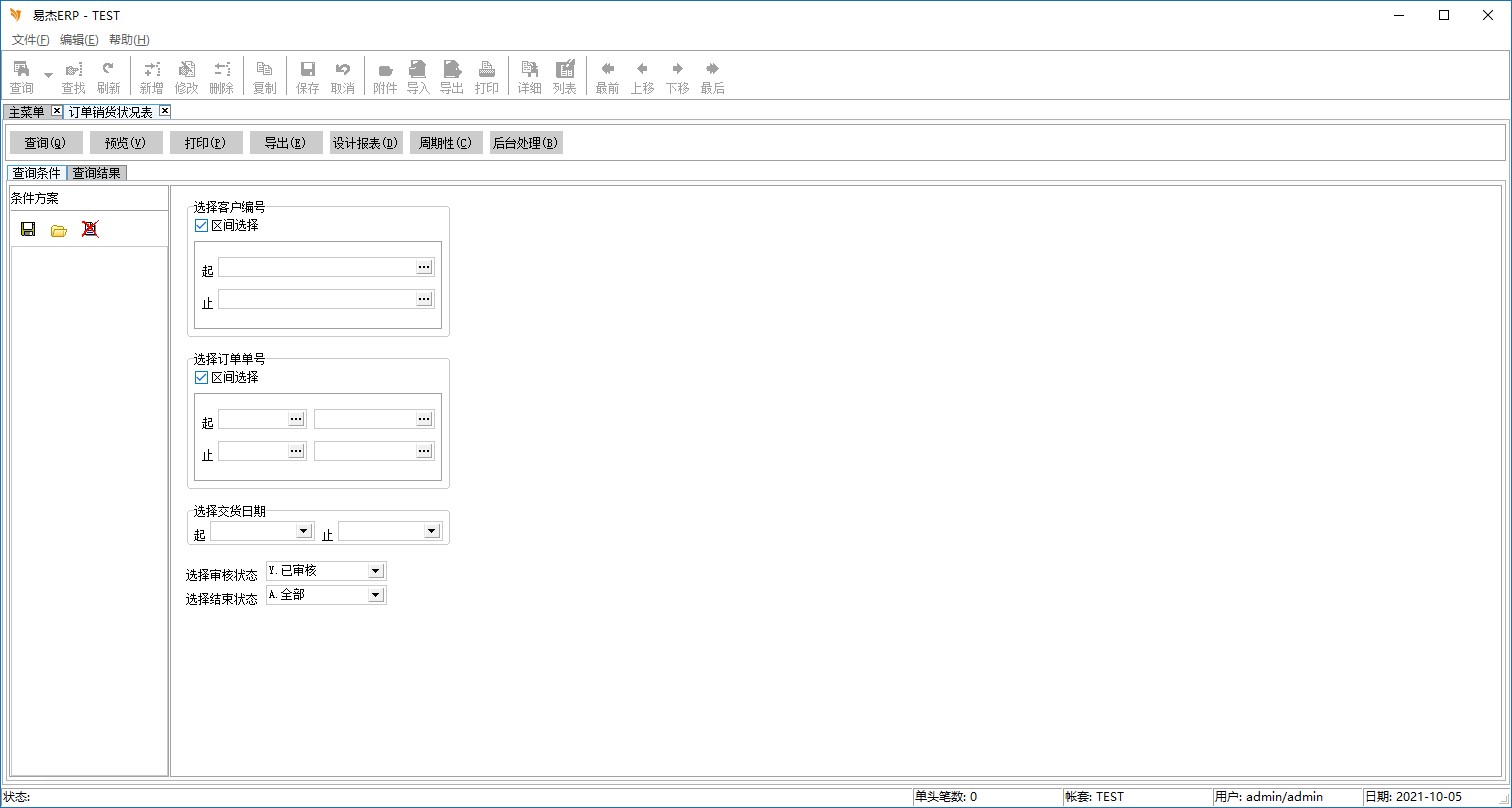 程序名称:订单销货状况表