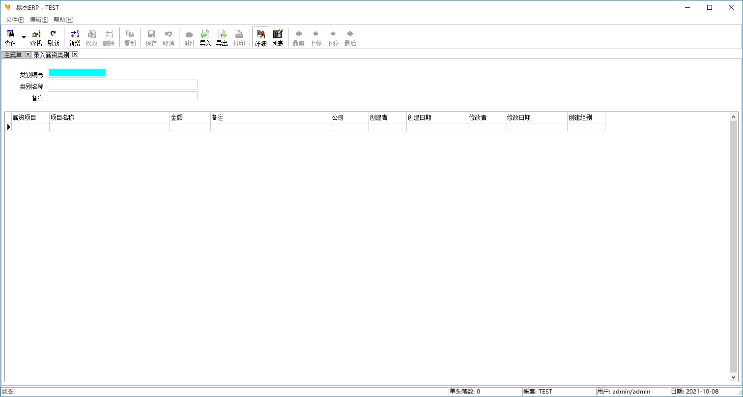 建立和维护输入薪资类别编号、名称及对应的薪资项目和金额等信息。