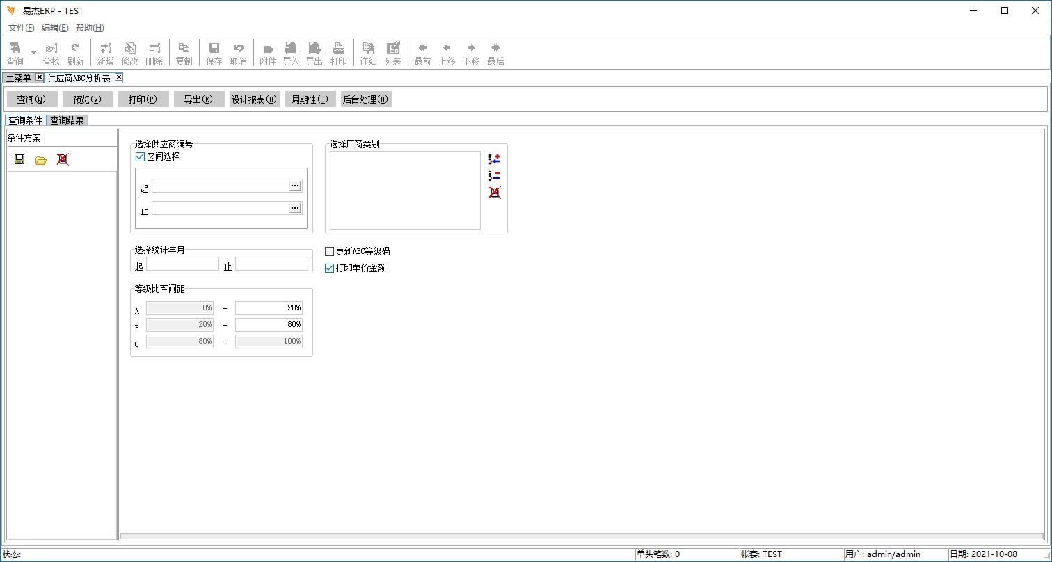 • 按供应商期间进货的金额,进行ABC分析管理的打印。