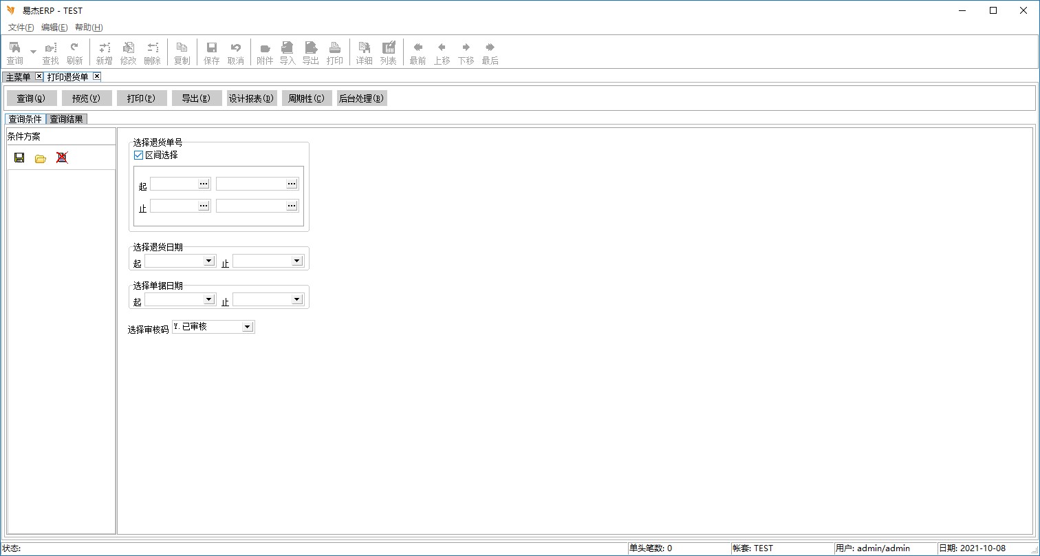 退货单的『退货日期』筛选条件,空白表全部日期。