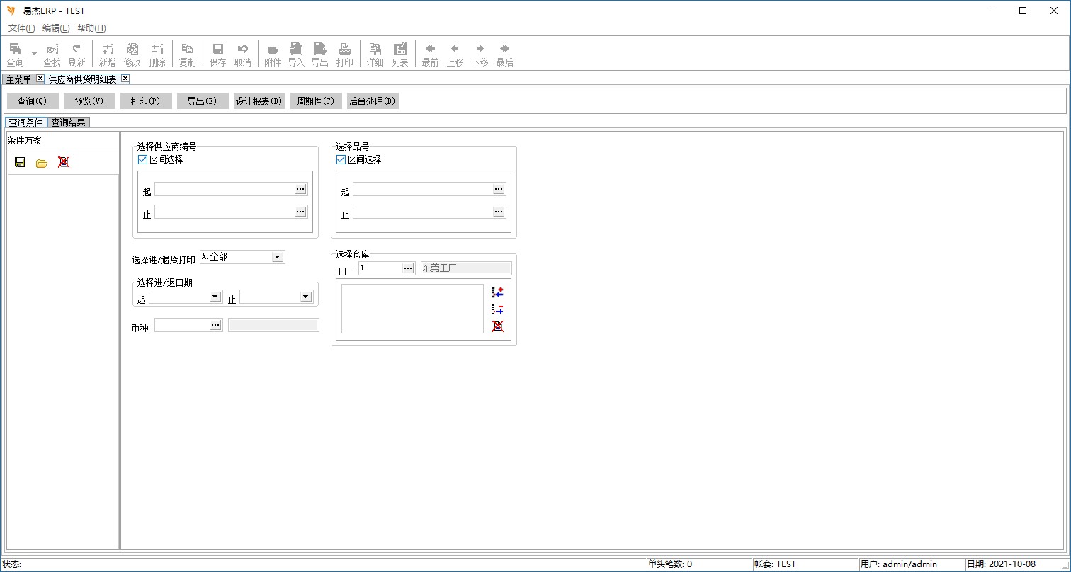 按选择进/退单日期,输入条件,空白表全部信息。