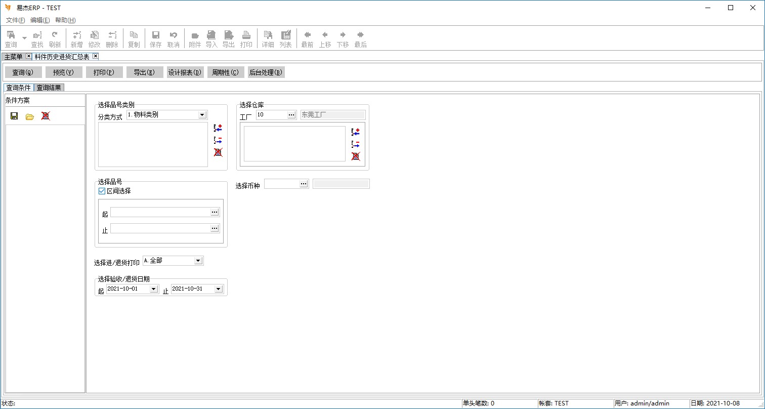 程序名称:料件历史进货汇总表