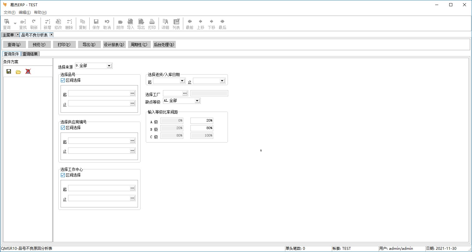 可选择品号别不良原因缺点等级.缺点等级分为1.CR,2.MA,3.MI及4.全部,输入时缺省为全部。