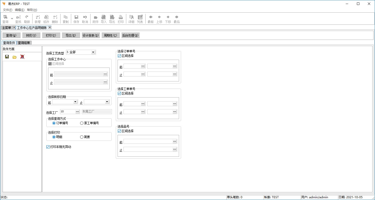 [F2]工单信息查询,可以选择需要打印的工单编号范围,空白表全部信息。