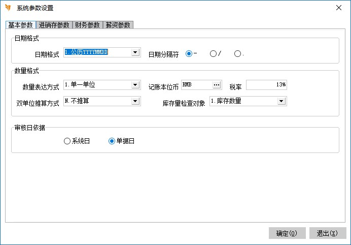 树状主菜单中选择 系统管理子系统->基础设置->系统参数设置,出现如下画面: