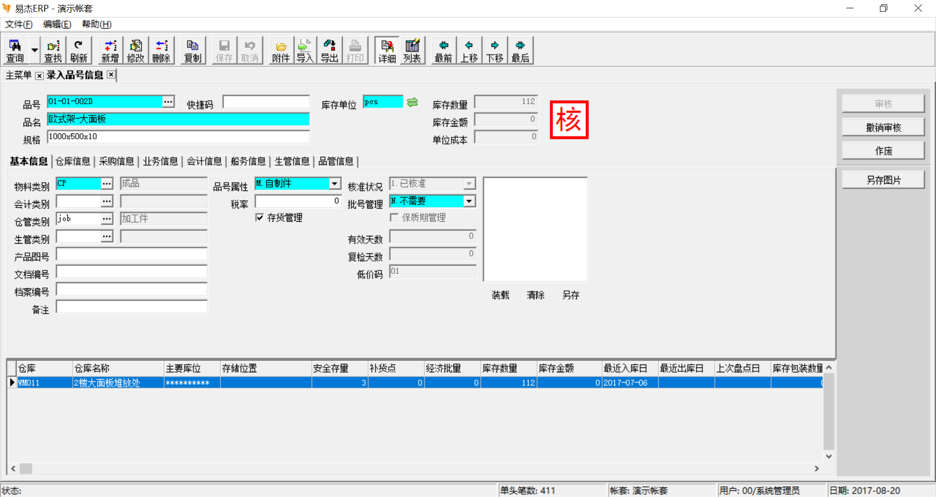 日常库存交易数据输入,比如:库存交易、生产领料/退料、采购收货/退货、销售出货/退货等等,包含单据类别、交易日期、交易的品号、数量等信息。交易数据保存或审核时,我们设定一程序自动更新品号信息表中的最近出库日期或最近入库日期。