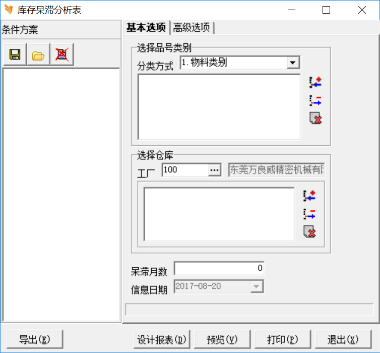 按不同的物料类别,不同的呆滞时间来查找呆滞物料,如下图所示: