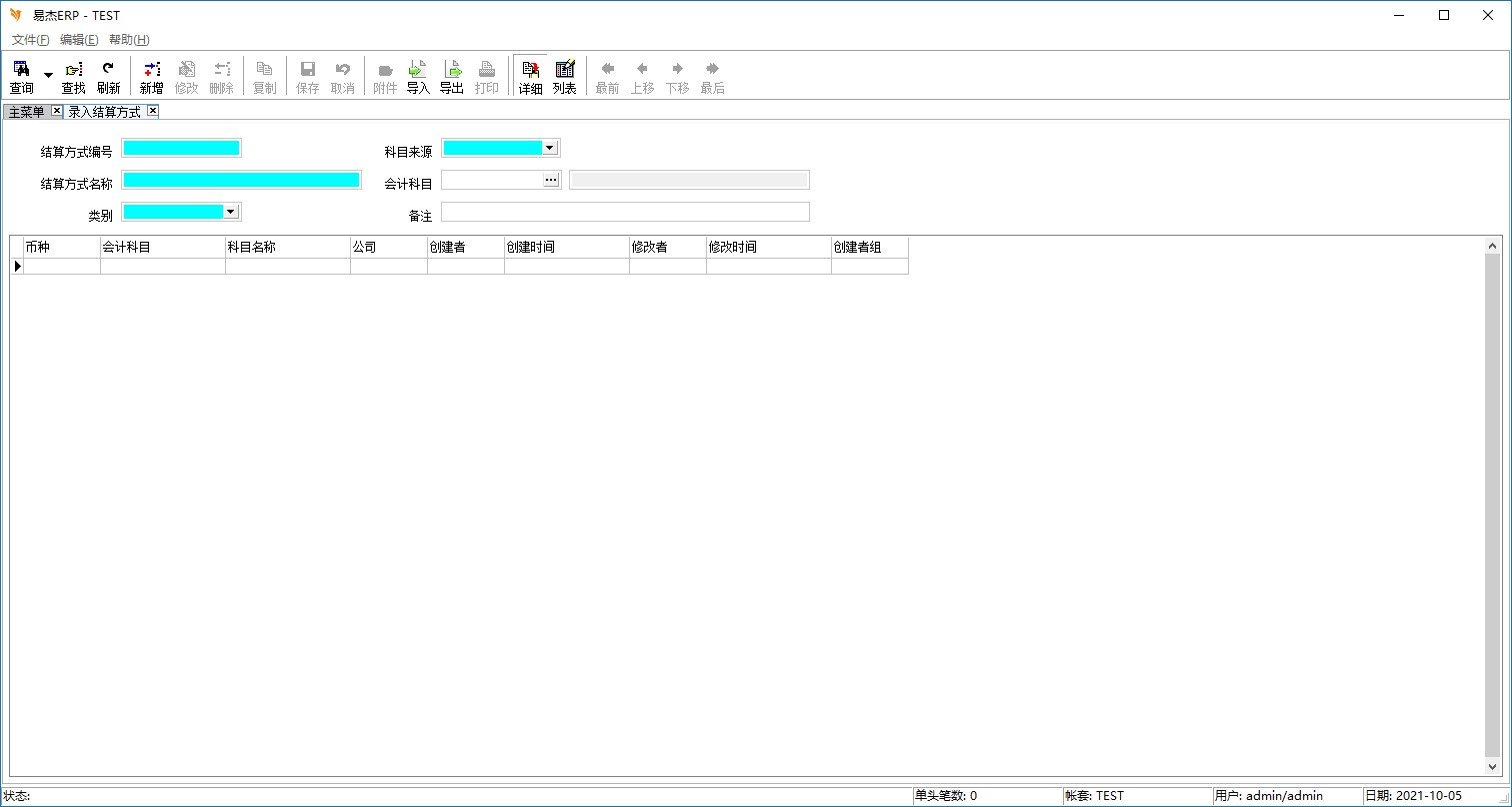 - 用来录入结算方式的相关信息。